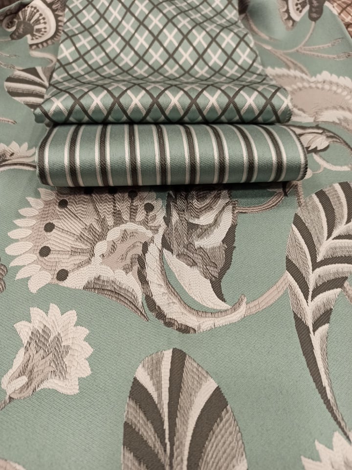 Τα υφάσματα μας ειναι εξαιρετικής ποιότητας, με προδιαγραφές αντοχής σε πλύσιμο, σίδερο και φτιαγμένα απο διάφορες συνθέσεις υλικών οπως λινό, βαμβάκι, μετάξι, polyester και σύμμικτες ινες. Για περαιτέρω πληροφορίες μην διστάσετε να επικοινωνήσετε με το κατάστημα μας.